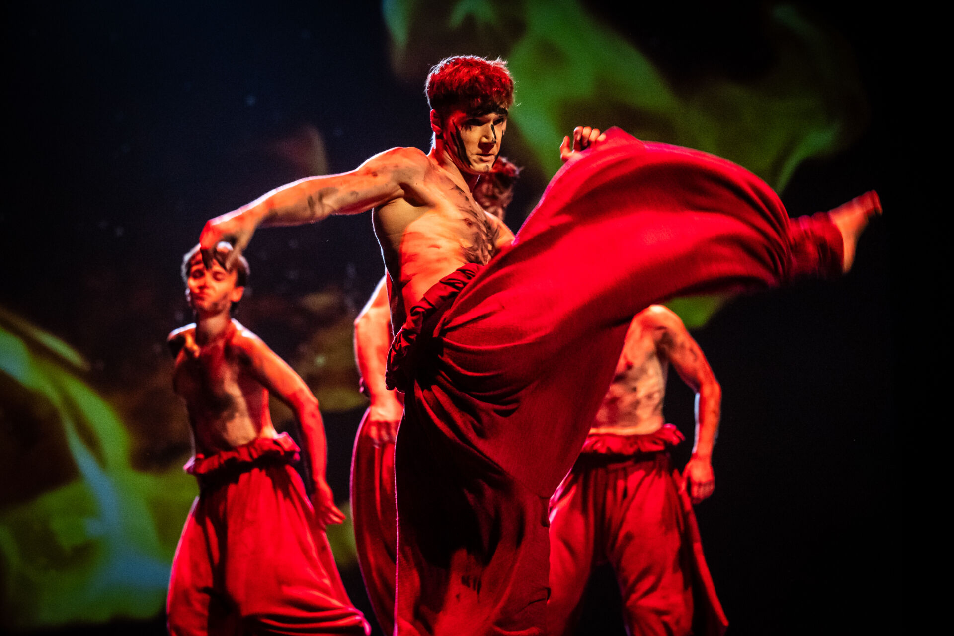 Przechodząc przez artystyczny portal zanurzamy się w elementy charakterystyczne dla tej kultury, poznając wyrażone dźwiękiem i ruchem obyczaje oraz ówczesne wierzenia. Warstwa ruchowa została opracowana w oparciu o współczesne techniki ekspresji tanecznej przez dwójkę choreografów: Elżbietę Pańtak oraz Artura Grabarczyka. W spektaklu mieszają się wątki miłosne, magiczne i rytualne przetworzone artystycznie z elementami historycznymi.