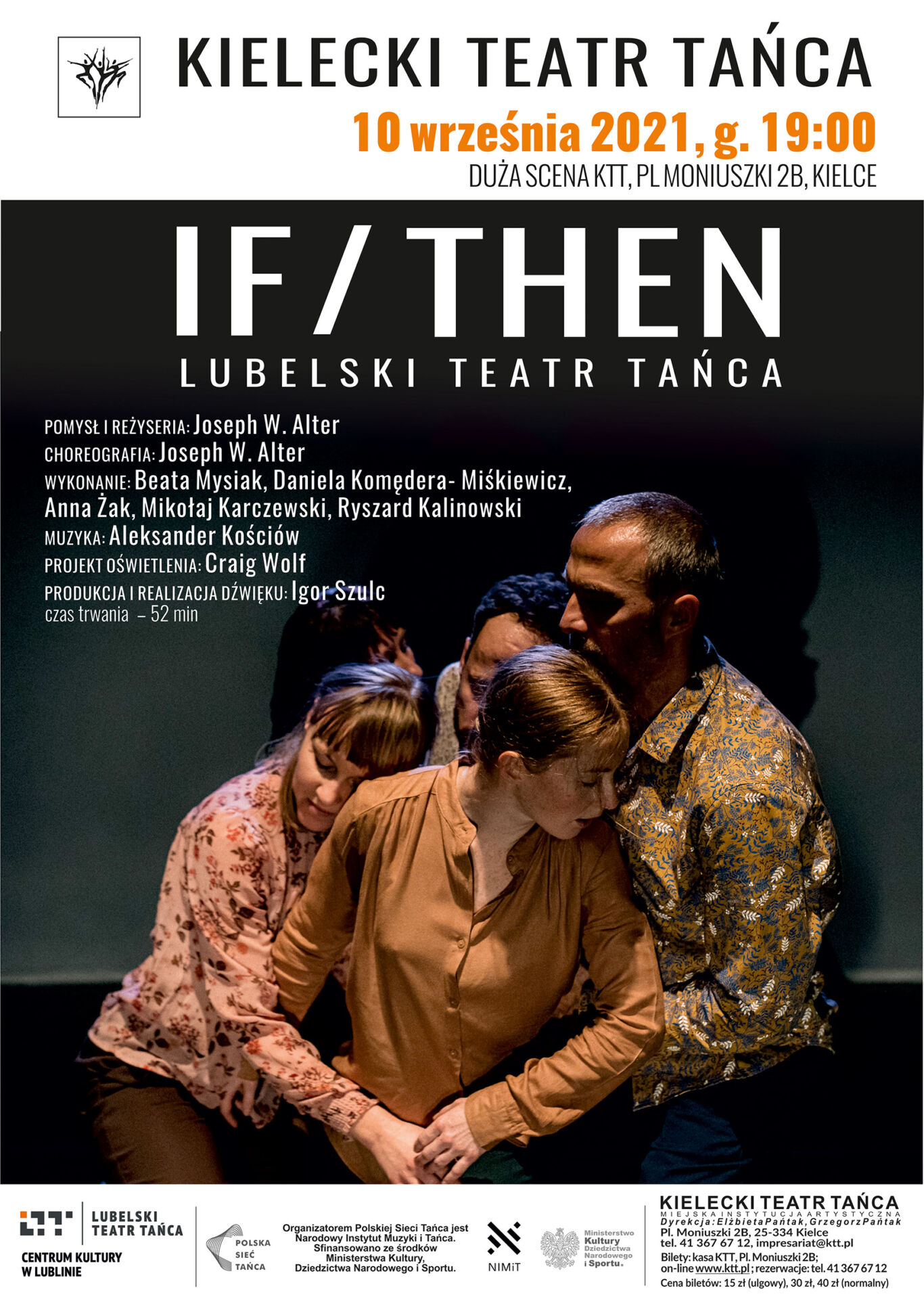 Kielecki Teatr Tańca zaprasza na spektakl „If/Then” Lubelskiego Teatru Tańca w choreografii Josepha W. Altera. Spektakl zostanie zaprezentowany w ramach Polskiej Sieci Tańca 10 września  2021 r. (piątek) o godz. 19:00 na Dużej Scenie Kieleckiego Teatru Tańca (za żelazną kurtyną).