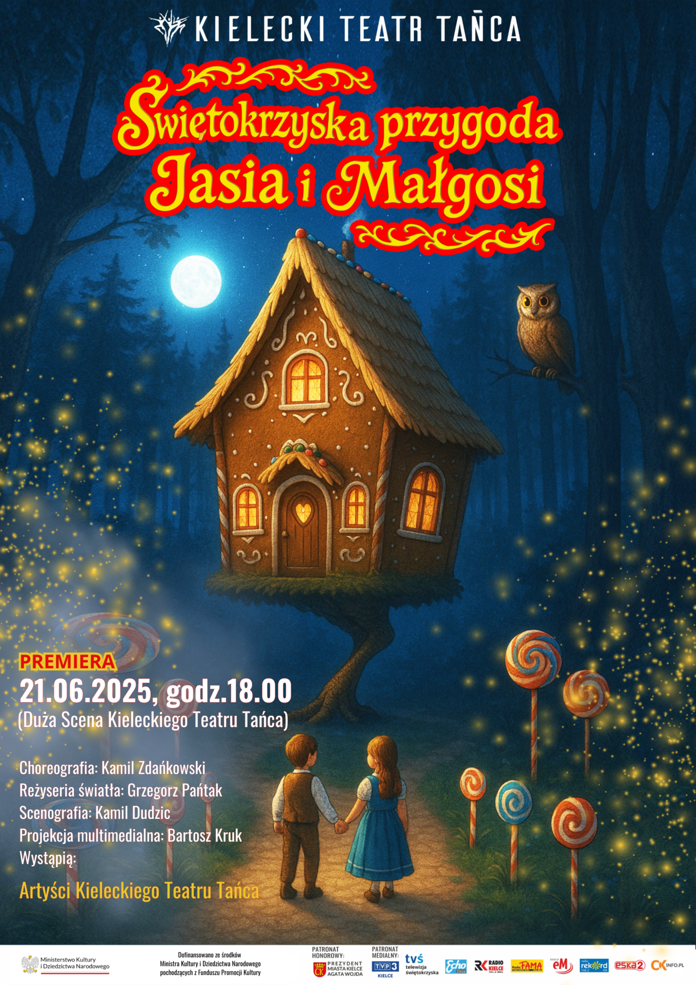 Spektakl w choreografii Kamila Zdańkowskiego to historia nawiązująca do tradycyjnych baśni europejskich, mająca skłonić widza do sięgnięcia do kanonu tradycyjnych opowieści. Jako spektakl familijny opowiadają o podróży Jasia i Małgosi, którzy po opuszczeniu ich wesołej wioski, napotykają na swojej drodze postaci znane z innych bajek: Czerwonego Kapturka, Kota w Butach, Pinokia czy Trzy Świnki, które zmagają się z natrętnym Wilkiem. Ich wędrówka doprowadza do spotkania z Babą Jagą, która kolorowymi łakociami i wypiekami próbuje zwieść głównych bohaterów, aby ich zjeść. Dzięki sprytowi i odwadze udaje im się przechytrzyć złą czarownicę i szczęśliwie wrócić do domu. Spektakl w swojej formie nawiązuje do folkloru słowiańskiego: przede wszystkim świętokrzyskiego symbolu czarownicy, a w warstwie muzycznej, także do kultury czeskiej, na co pozwoli wykorzystanie muzyki Antonín Dvořáka (Rapsodie Słowiańskie, Tańce Słowiańskie). Głównym celem powstania spektaklu jest uzupełnienie luki w ofercie kulturalnej dla młodego odbiorcy, a tematyka spektaklu dodatkowo ma za zadanie skłonić widza do zainteresowania i sięgnięcia do kanonu baśni, które są równie piękne, co współczesne.