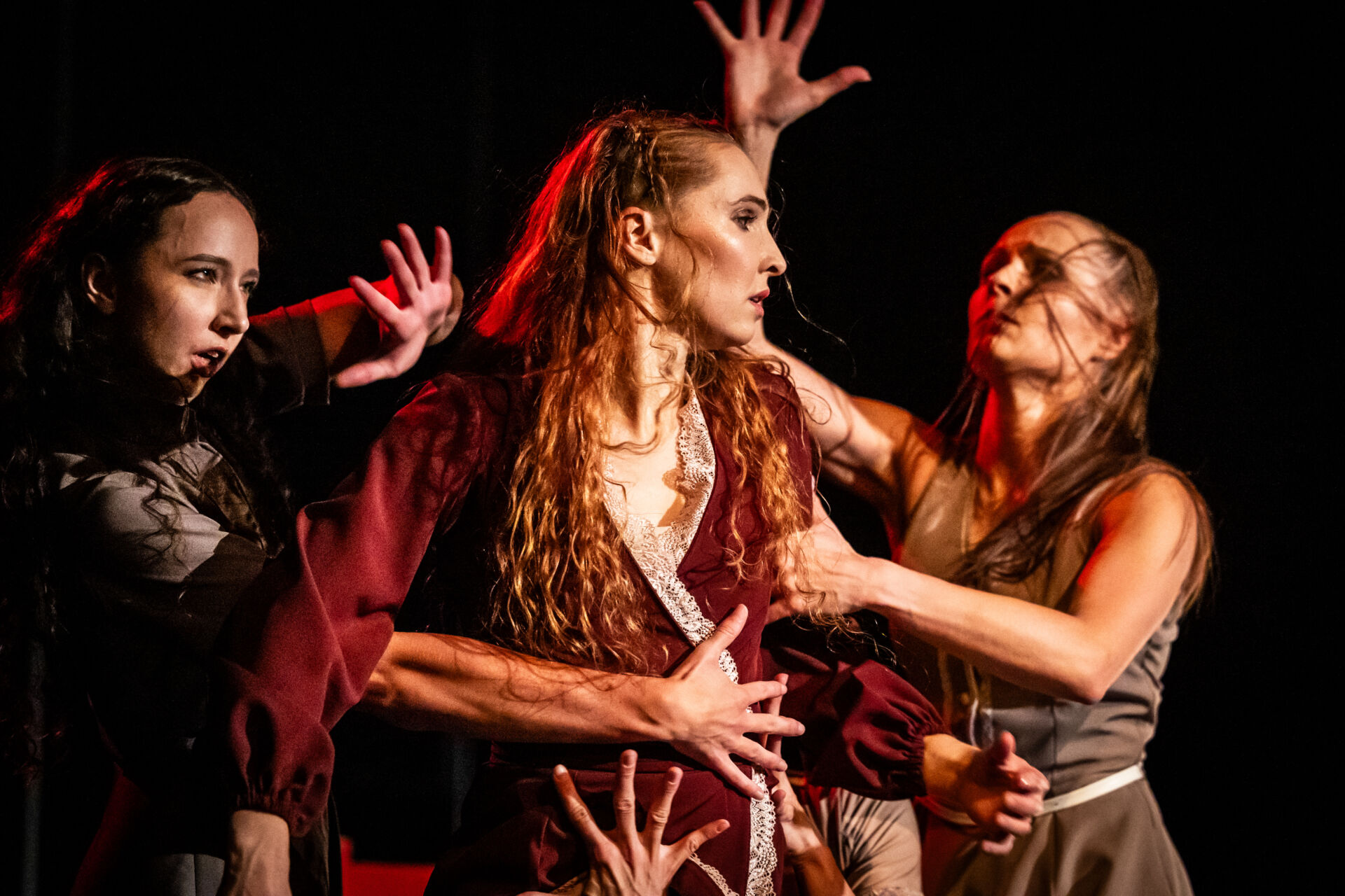 Nie ma tu linearnej fabuły – są tylko emocje, wątpliwości, lęki i uwolnienie. Poprzez ruch, interakcję i rytm odkrywa się główna idea: kobiece wsparcie to siła, która potrafi uzdrawiać.