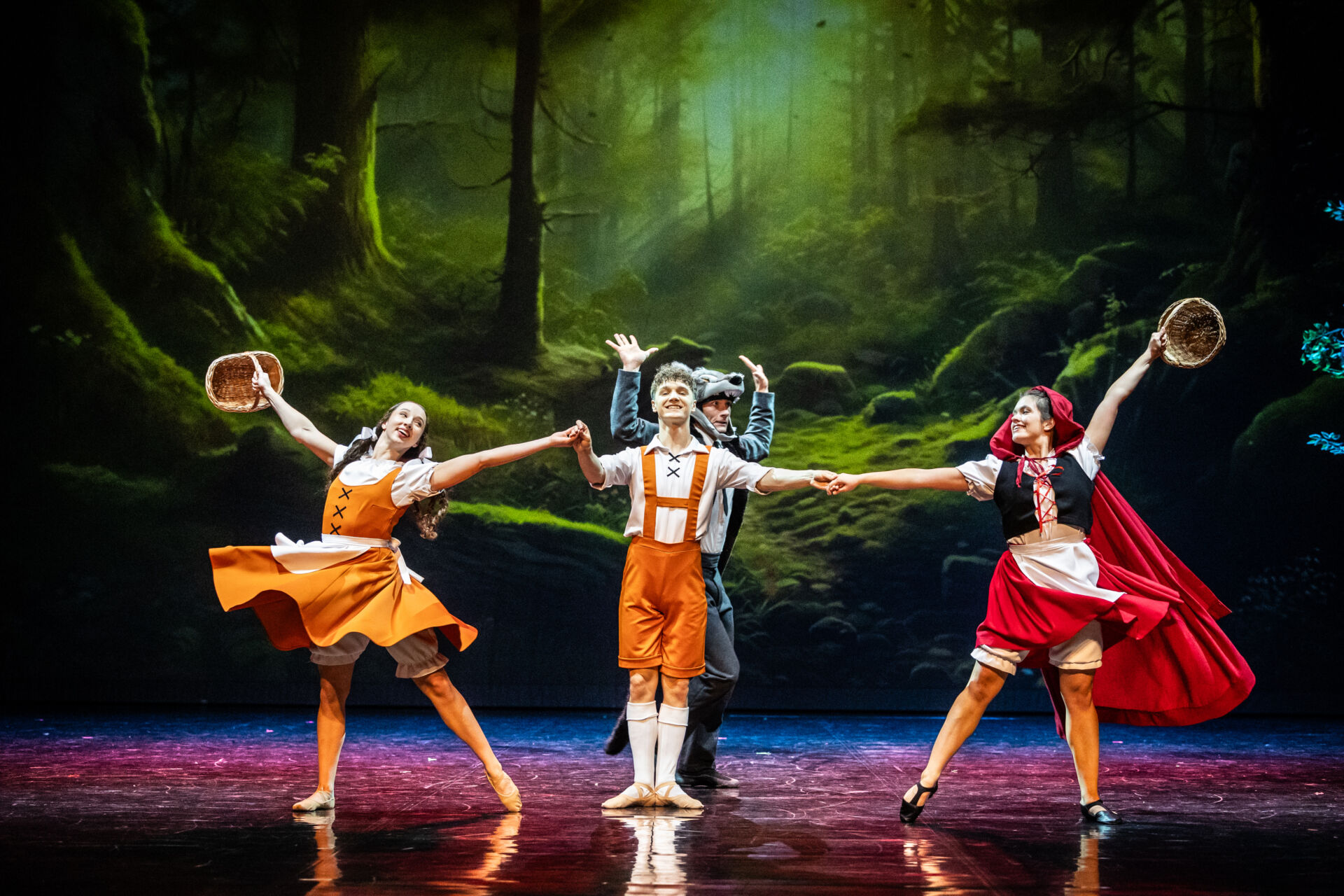 Spektakl w choreografii Kamila Zdańkowskiego to historia nawiązująca do tradycyjnych baśni europejskich, mająca skłonić widza do sięgnięcia do kanonu tradycyjnych opowieści. Jako spektakl familijny opowiadają o podróży Jasia i Małgosi, którzy po opuszczeniu ich wesołej wioski, napotykają na swojej drodze postaci znane z innych bajek: Czerwonego Kapturka, Kota w Butach, Pinokia czy Trzy Świnki, które zmagają się z natrętnym Wilkiem. Ich wędrówka doprowadza do spotkania z Babą Jagą, która kolorowymi łakociami i wypiekami próbuje zwieść głównych bohaterów, aby ich zjeść. Dzięki sprytowi i odwadze udaje im się przechytrzyć złą czarownicę i szczęśliwie wrócić do domu. Spektakl w swojej formie nawiązuje do folkloru słowiańskiego: przede wszystkim świętokrzyskiego symbolu czarownicy, a w warstwie muzycznej, także do kultury czeskiej, na co pozwoli wykorzystanie muzyki Antonín Dvořáka (Rapsodie Słowiańskie, Tańce Słowiańskie). Głównym celem powstania spektaklu jest uzupełnienie luki w ofercie kulturalnej dla młodego odbiorcy, a tematyka spektaklu dodatkowo ma za zadanie skłonić widza do zainteresowania i sięgnięcia do kanonu baśni, które są równie piękne, co współczesne.